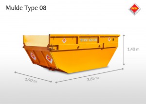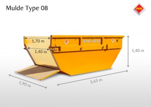 Wir stellen Ihnen Ihr gewünschtes Material in einer Mulde Type 08 zu.